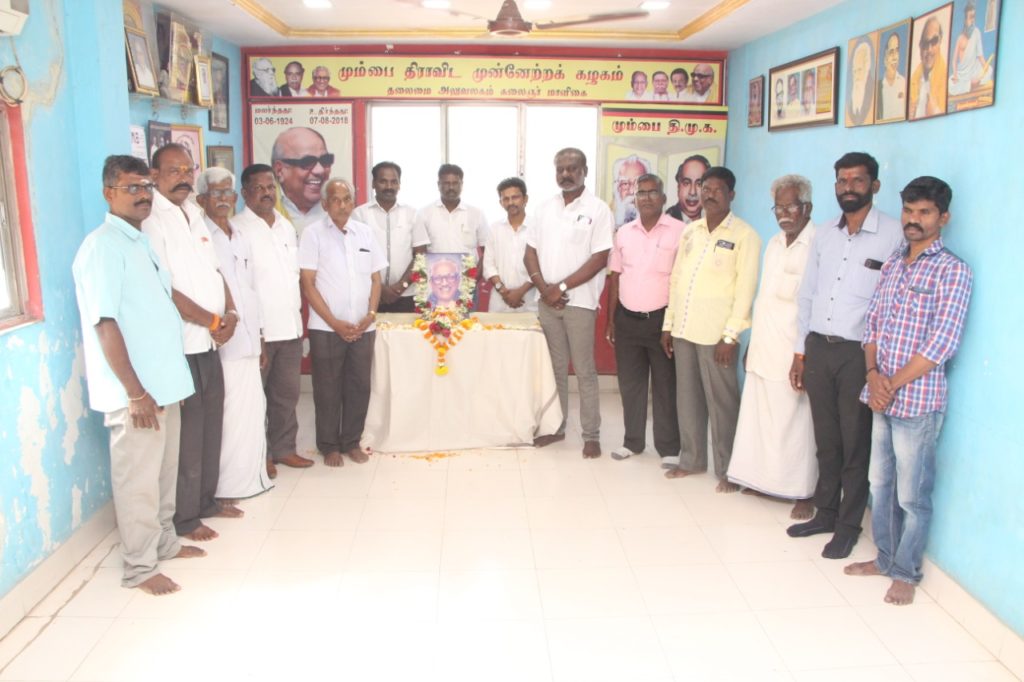 தி.மு.க. பொதுச்செயலாளர் இனமான பேராசிரியர் மானமிகு க. அன்பழகன் அவர்கள் 7.03.2020 அன்று மறைந்ததையொட்டி மும்பை தி.மு.க. தலைமை பணிமனையில் பேராசிரியர் திருவுருவப் படத்திற்கு மலர் அஞ்சலி செலுத்தப்பட்டது.