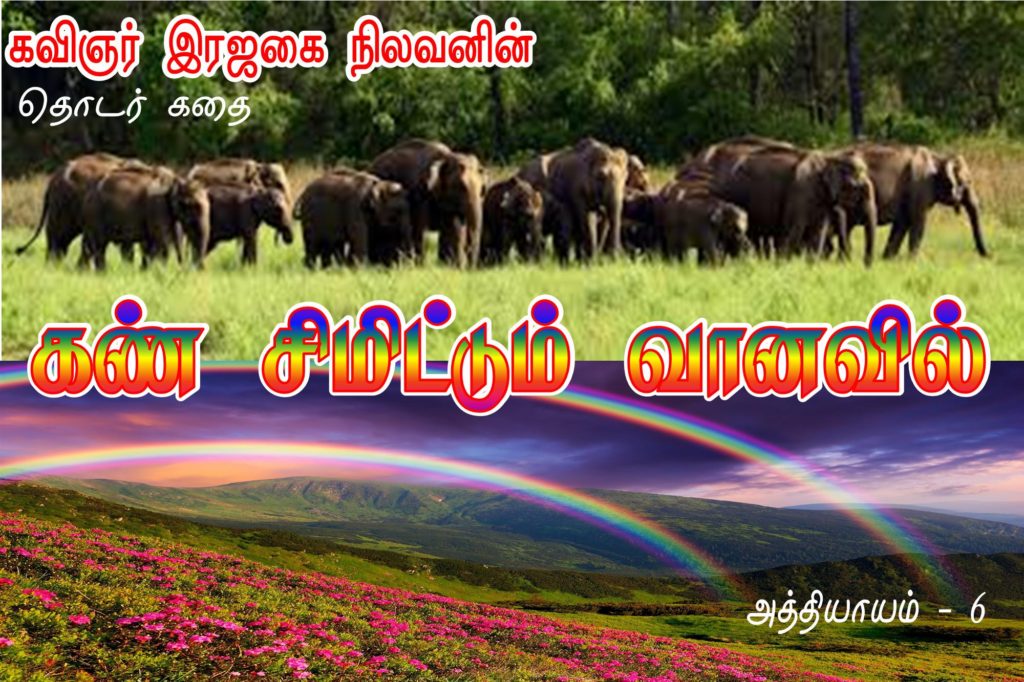 வசந்த் திரும்பிப்பார்க்க.. எதிரே யானைக் கூட்டம் நடந்து வந்து கொண்டிருந்தது மெதுவாக…