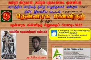 தென்னரசு மின்னிதழ் சிறுகதைப் போட்டி-16 படைப்பாளர் - அபிகிருஷ்ணா, மந்தைவெளி,சென்னை [மேலும் படிக்க...]