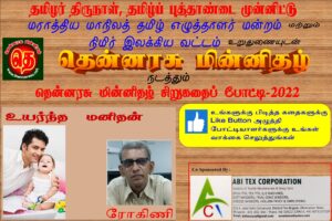 தென்னரசு மின்னிதழ் சிறுகதைப் போட்டி-19 படைப்பாளர் - ரோகினி, ஐயப்பன்தாங்கல், சென்னை [மேலும் படிக்க...]