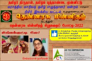 தென்னரசு மின்னிதழ் சிறுகதைப் போட்டி-24. படைப்பாளர்- செ.புனிதஜோதி, சென்னை [மேலும் படிக்க...]