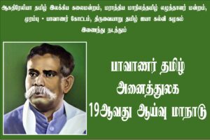 09-05-2021 ஞாயிற்றுக்கிழமை காலை 9 மணியளவில் பாவாணர் தமிழ் அனைத்துலக 19ஆவது ஆய்வு மாநாடு [மேலும் படிக்க...]