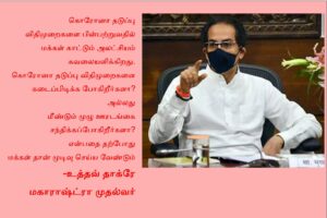 உத்தரவு நீட்டிக்கப்படுவதாக, முதலமைச்சர் உத்தவ் தாக்கரே தெரிவித்துள்ளார். [மேலும் படிக்க...]