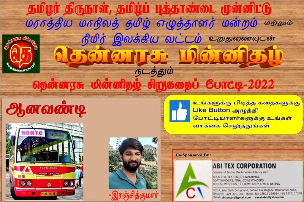 என்னது ஆனவண்டியா? ஆம்! ஆனவண்டி தான்! நீங்கள் என்னவோ ஆனவண்டி என்றவுடன்  யானை மேல் பயணப்படும் பெரிய சேரமன்னன் இவனோ என்று நினைத்துவிட வேண்டாம்.